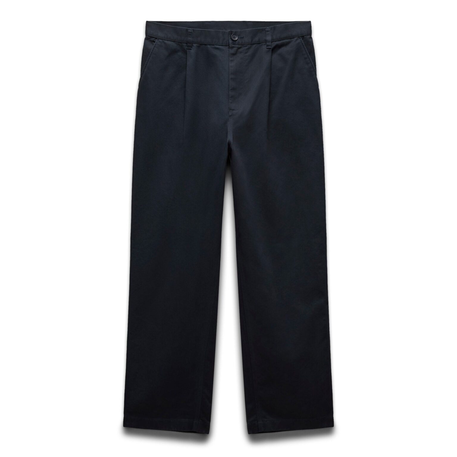 Our Sophomore silhouette features a relaxed straight leg, with a longer rise and roomy fit through the hips and thighs. This pleated pant is crafted from a cotton chino twill that’s washed for a softer, lived-in feel. Designed with a belt loop waistband, YKK metal zip fly, corded slant pockets, rear welt pockets, and plain cuffs.